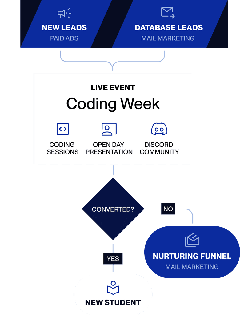Designed around live lessons and real-time community support, it built momentum toward a key moment: the Open Day, where interest turned into commitment.